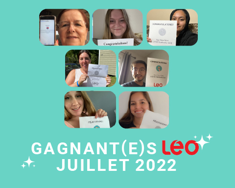 Chaque mois, nous partagerons avec vous un article sur les heureux gagnants de nos concours LEO! Rencontrez dès maintenant les gagnants de nos concours du mois de juillet 2022 et découvrez leur témoignage sur leur expérience avec la plateforme LEO. Nous vous informerons également de tous les concours prévus pour le mois suivant!