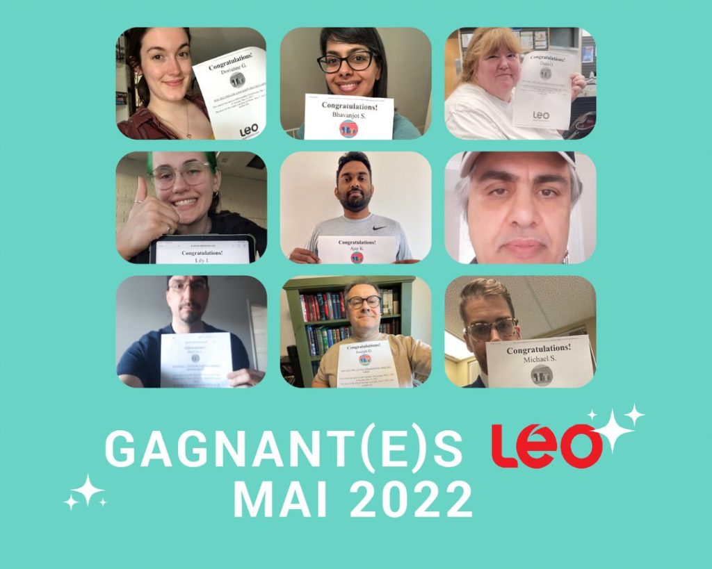 Chaque mois, nous partagerons avec vous un article sur les heureux gagnants de nos concours LEO! Rencontrez dès maintenant les gagnants de nos concours du mois de mai 2022 et découvrez leur témoignage sur leur expérience avec la plateforme LEO. Nous vous informerons également de tous les concours prévus pour le mois suivant!