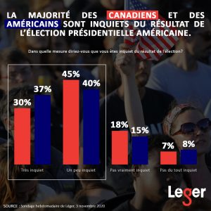- La majorité des Canadiens et des Américains sont inquiets du résultat de l’élection présidentielle américaine.